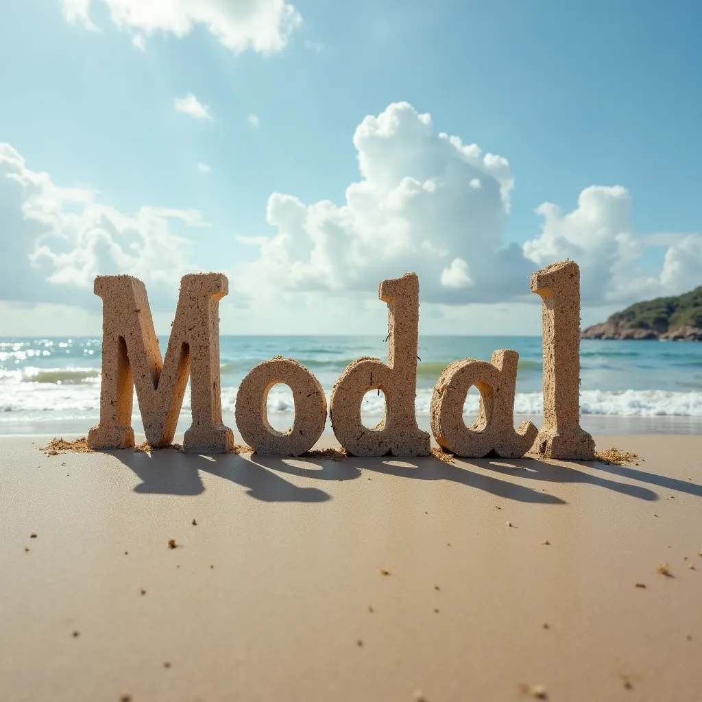 "prompt": "write `Modal` on a beach, make realistic photo", \
