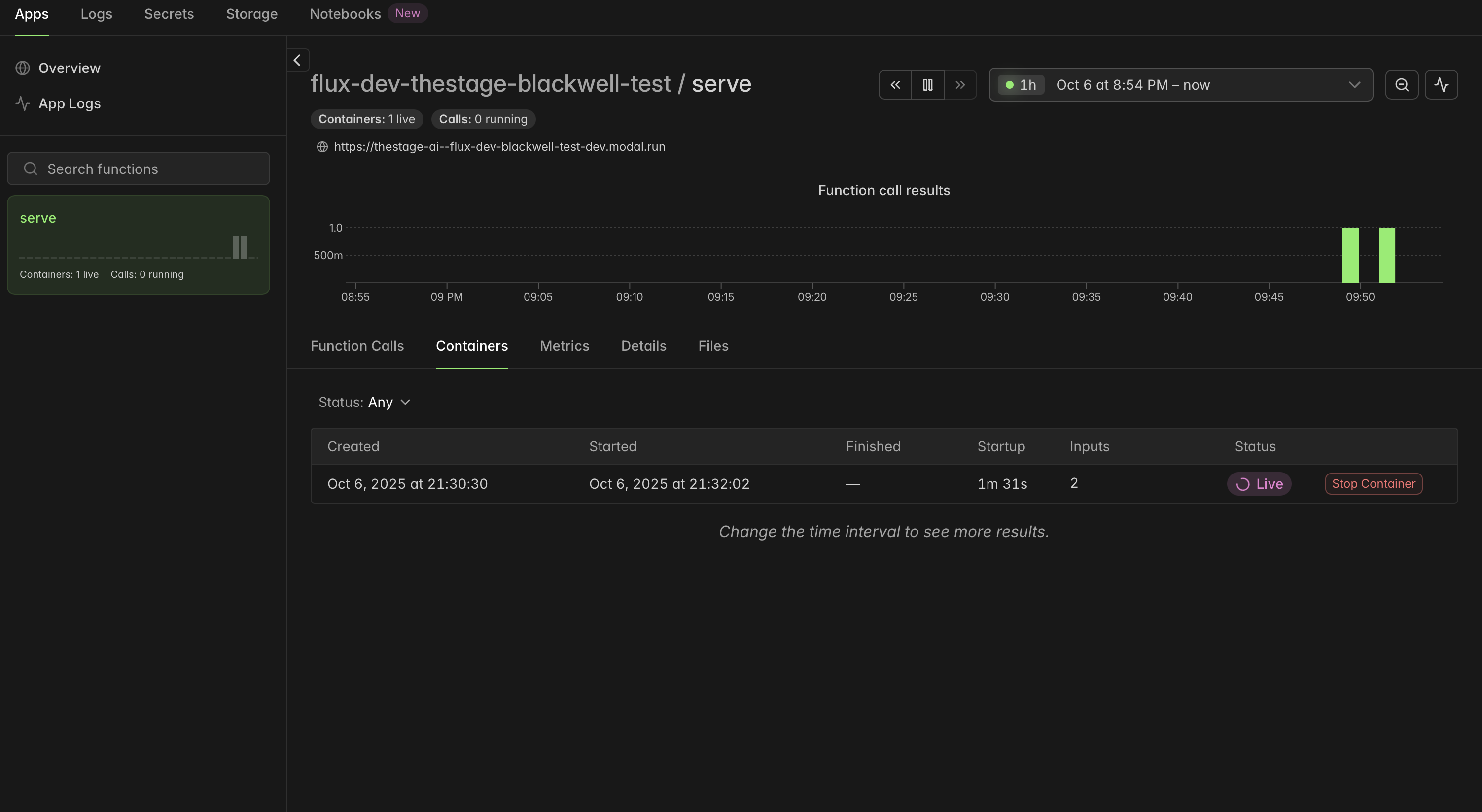 Modal serving setup. Setup modal serving for TheStage AI containers (FLUX.1-dev, FLUX.1-schnell, SDXL).
